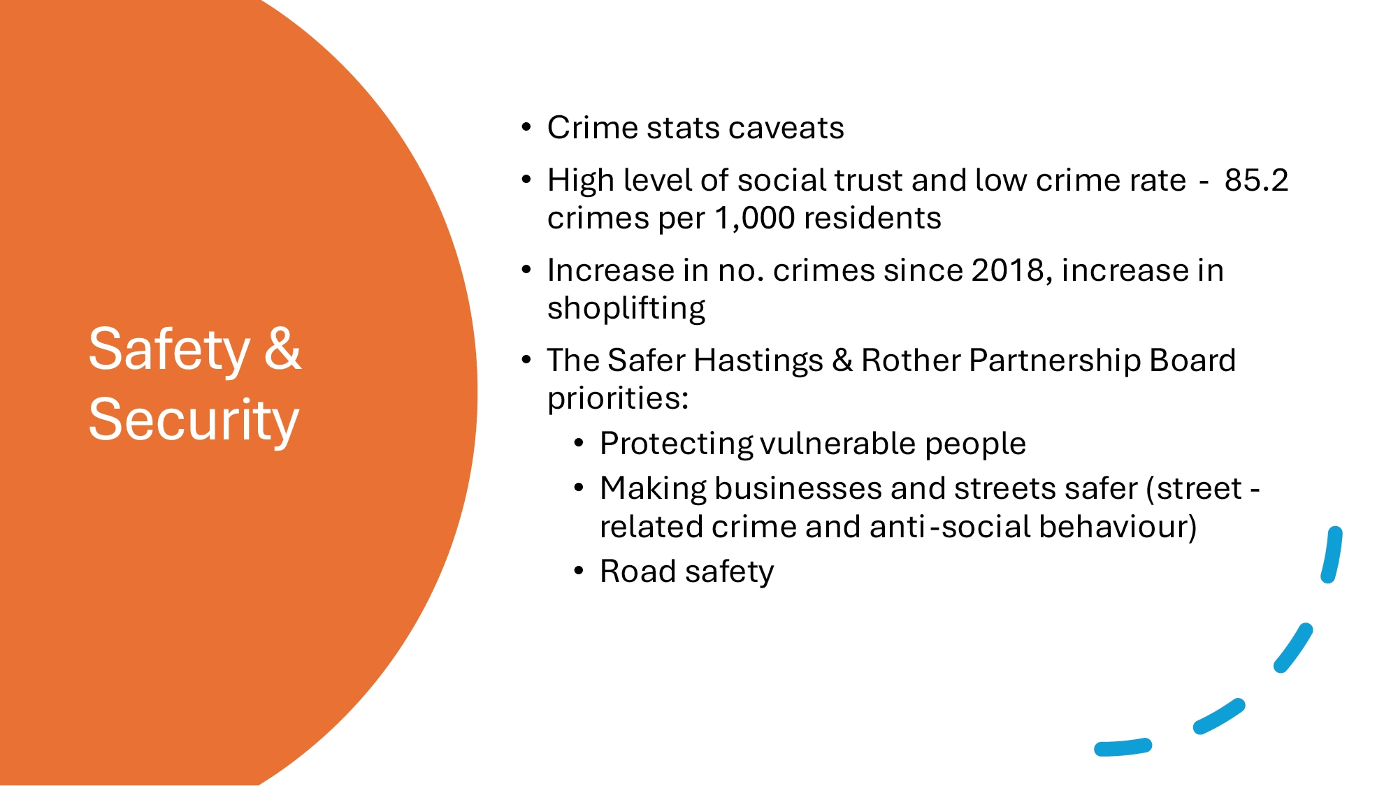Bruce introduced the presentation by noting that quantitative data is most useful taken in a wider context. Numbers tell us what is happening (or might be happening) and qualitative data gives us insight into how and why. For example, low retail vacancy rates only give so much information as the quality of retail or food outlets is also important indicator of deprivation or health and wellbeing and economic health.