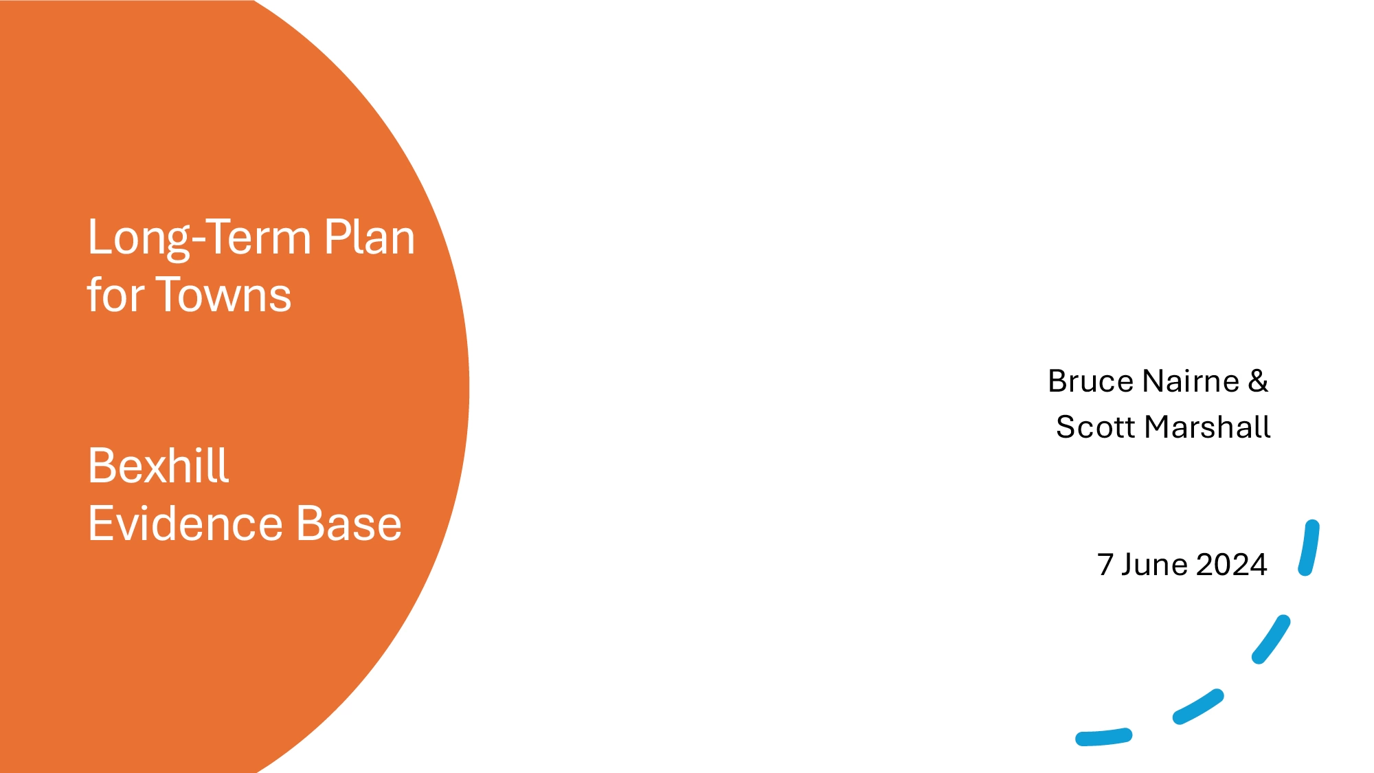 The Chair welcomed Scott Marshall and Bruce Nairn who gave a slide presentation on their data work so far. The presentation was designed to inform Town Board discussions later in the agenda regarding direction of travel for decision making on vision and the first 3 year investment plan. The summary slides are attached as Appendix A.